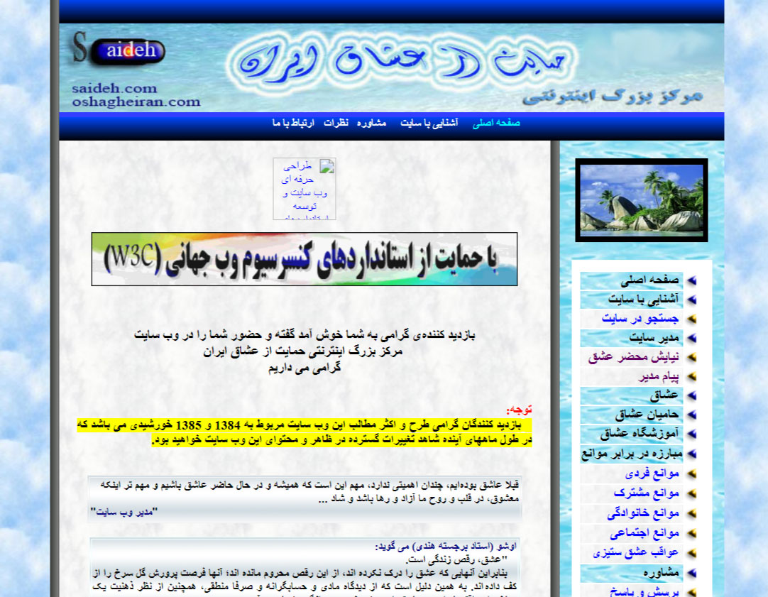 Writer of various articles about obstacles and problems of lovers in Iran.
