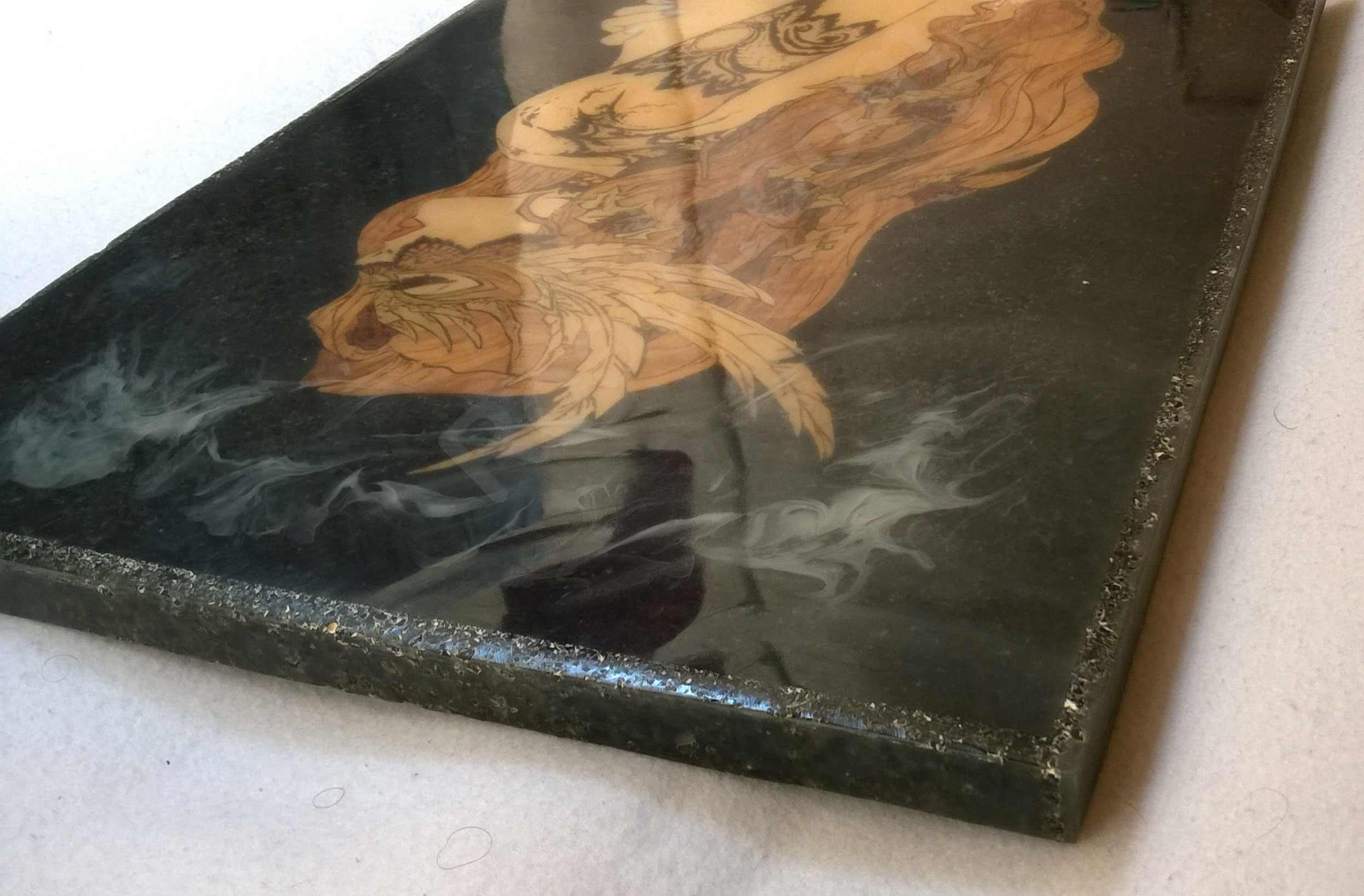 Wood Inlay / Wood Marquetry Panel of a Naked Woman