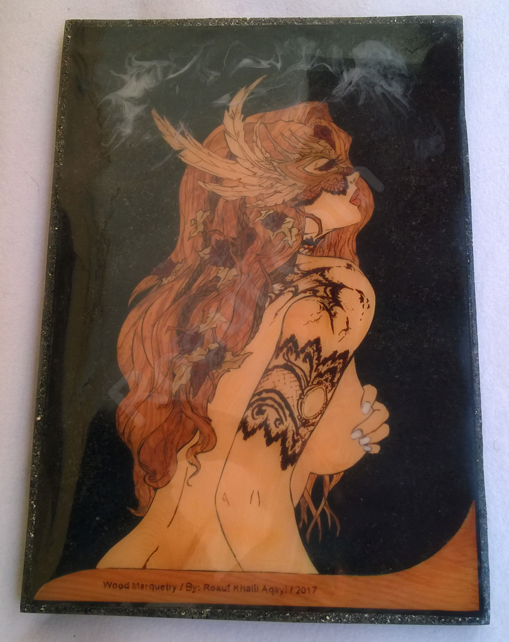 Art type: Wood Marquetry / Marquetry is the art of assembling thin slices of wood to form an image.