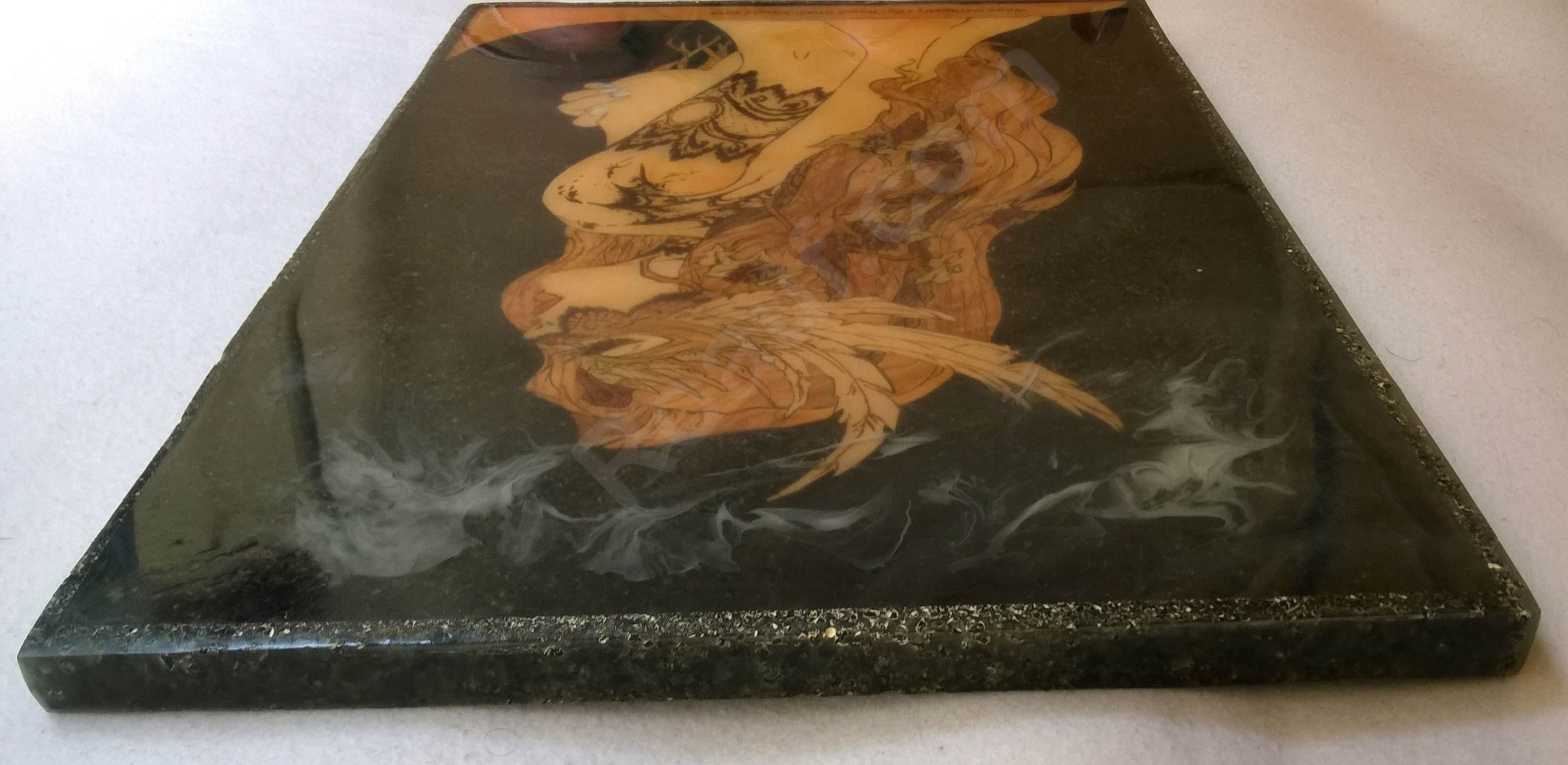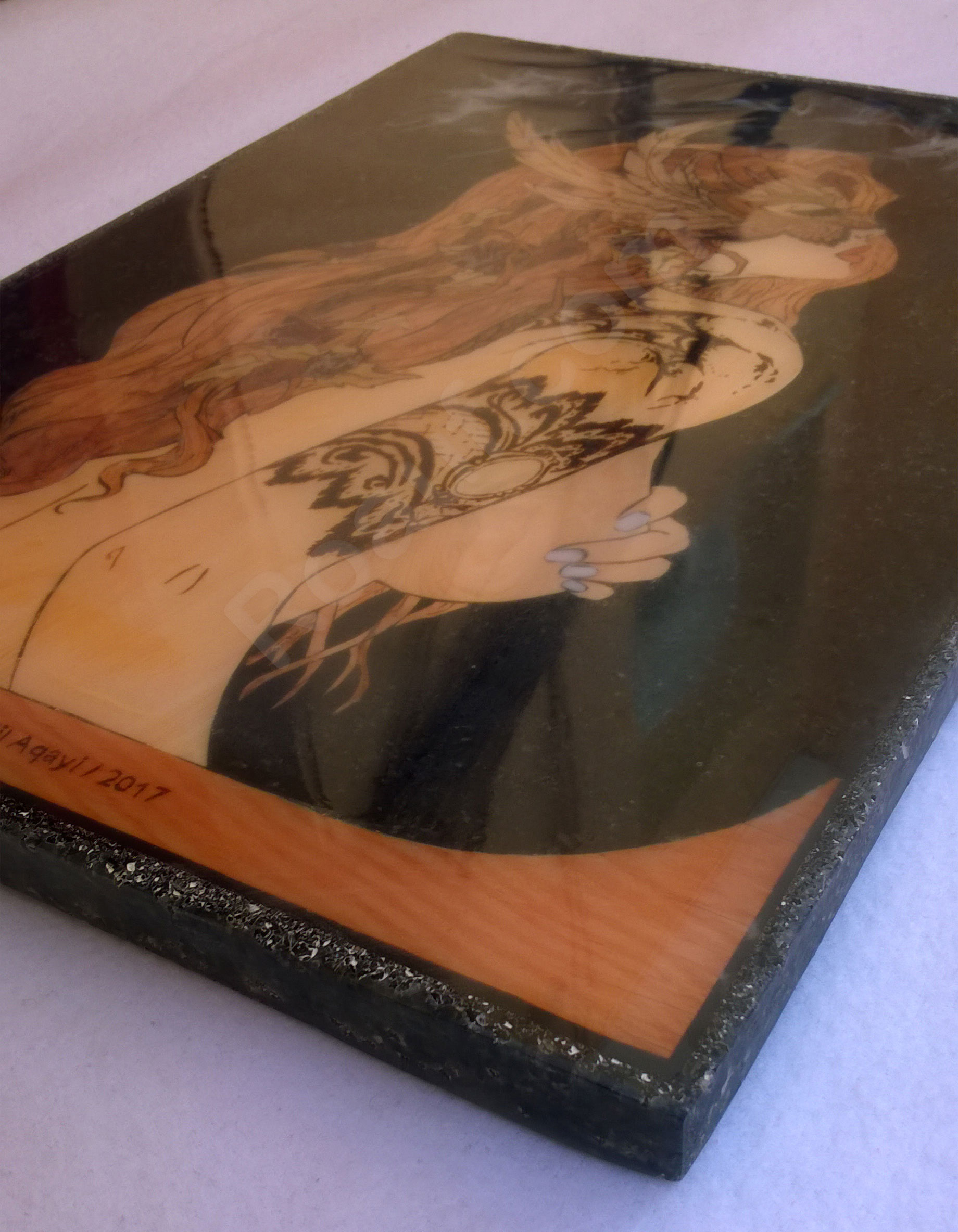 Polyester on the work: Yes / The surface of the work is covered with transparent polyester that it looks like glass.