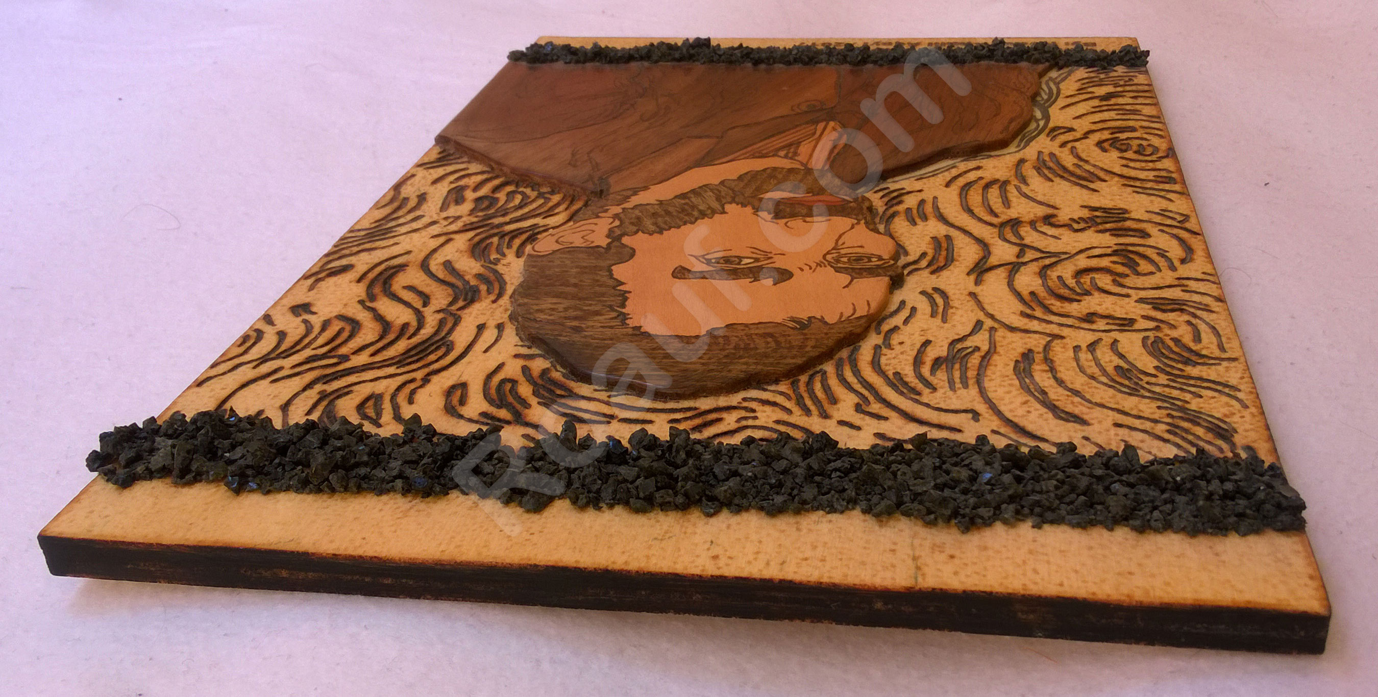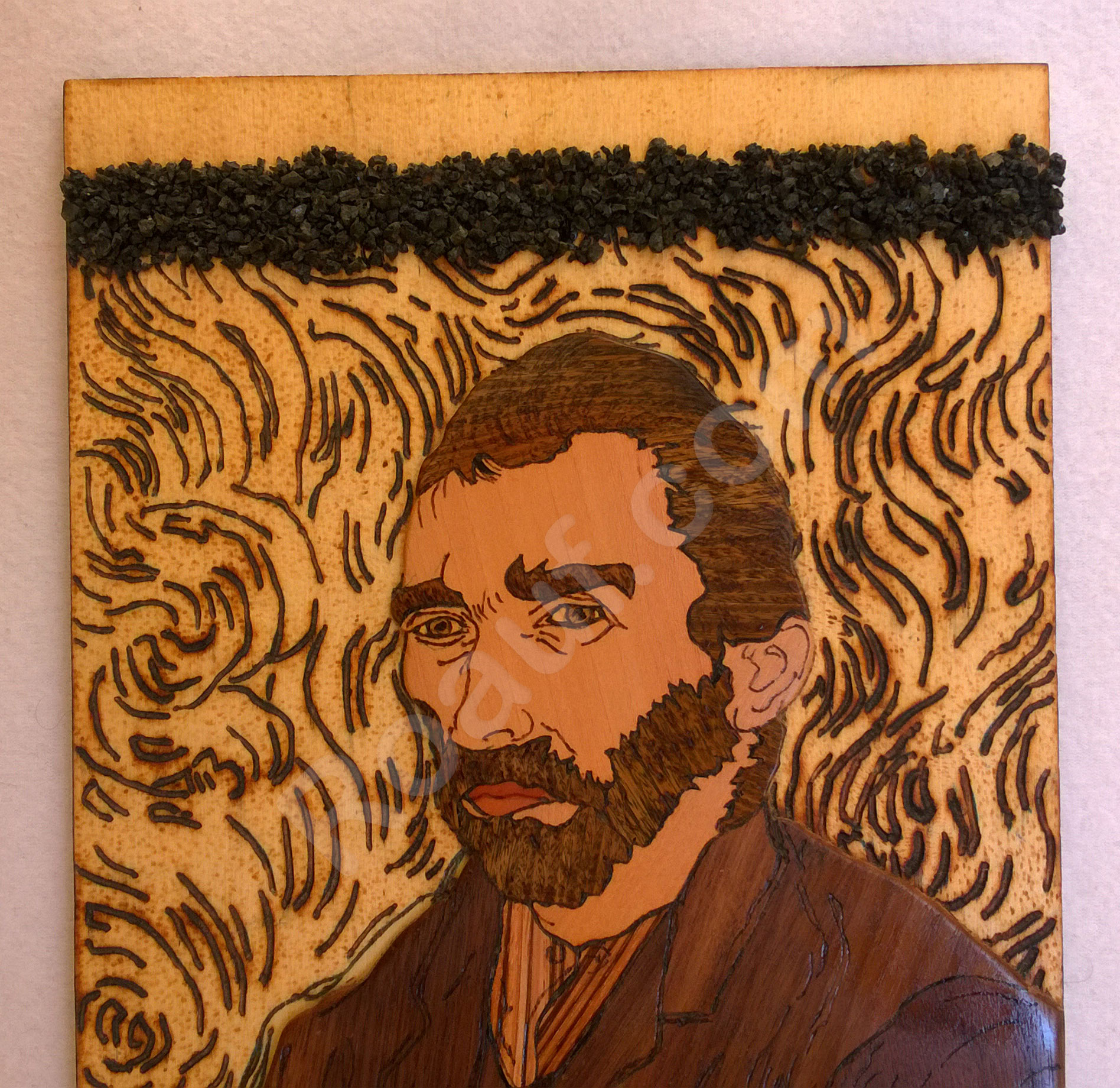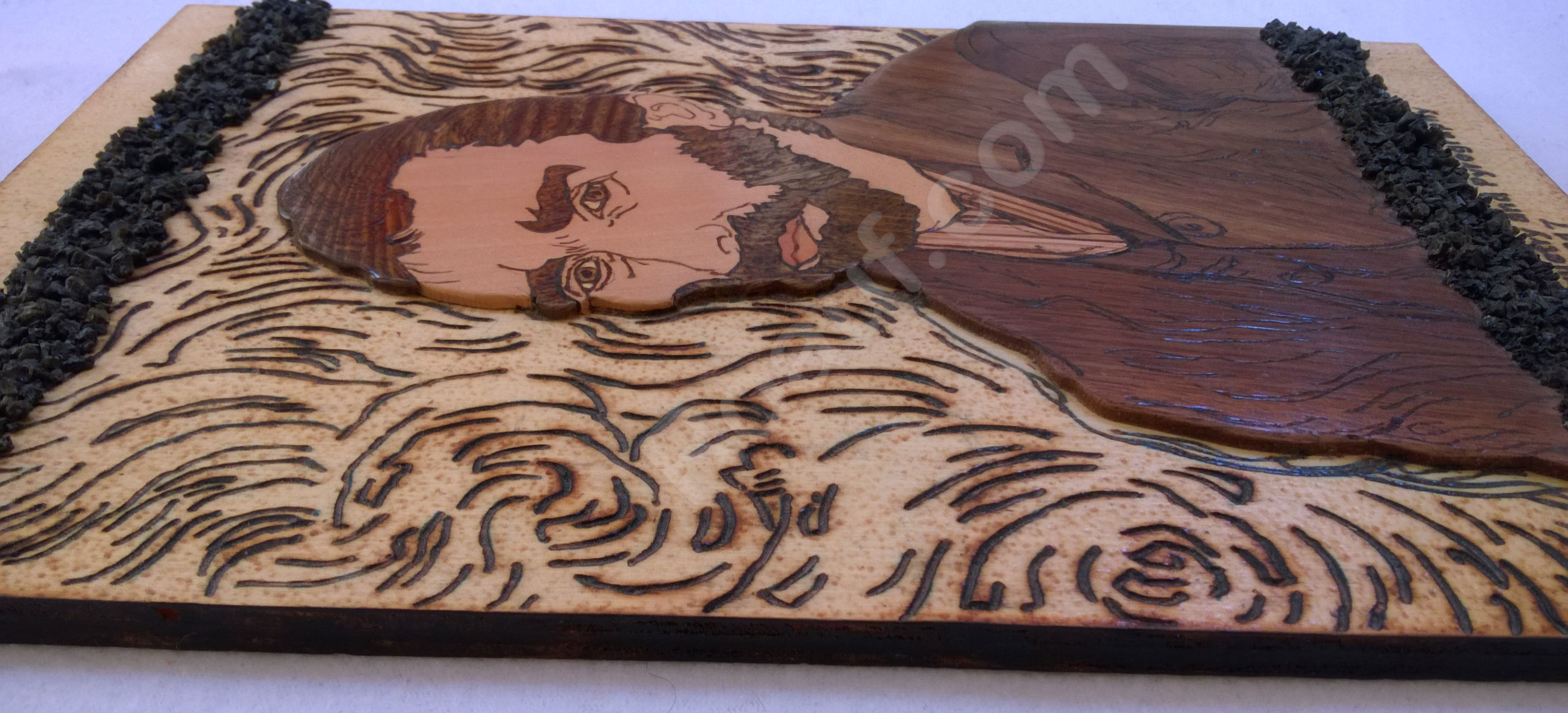 Wood Inlay / Wood Marquetry and Pyrography Panel of Van Gogh