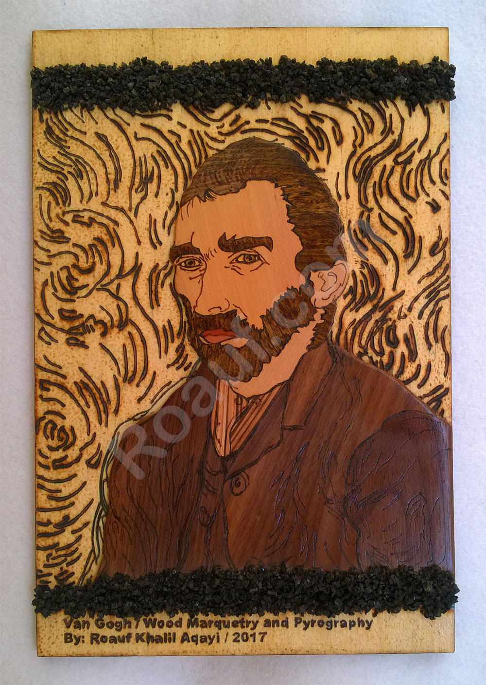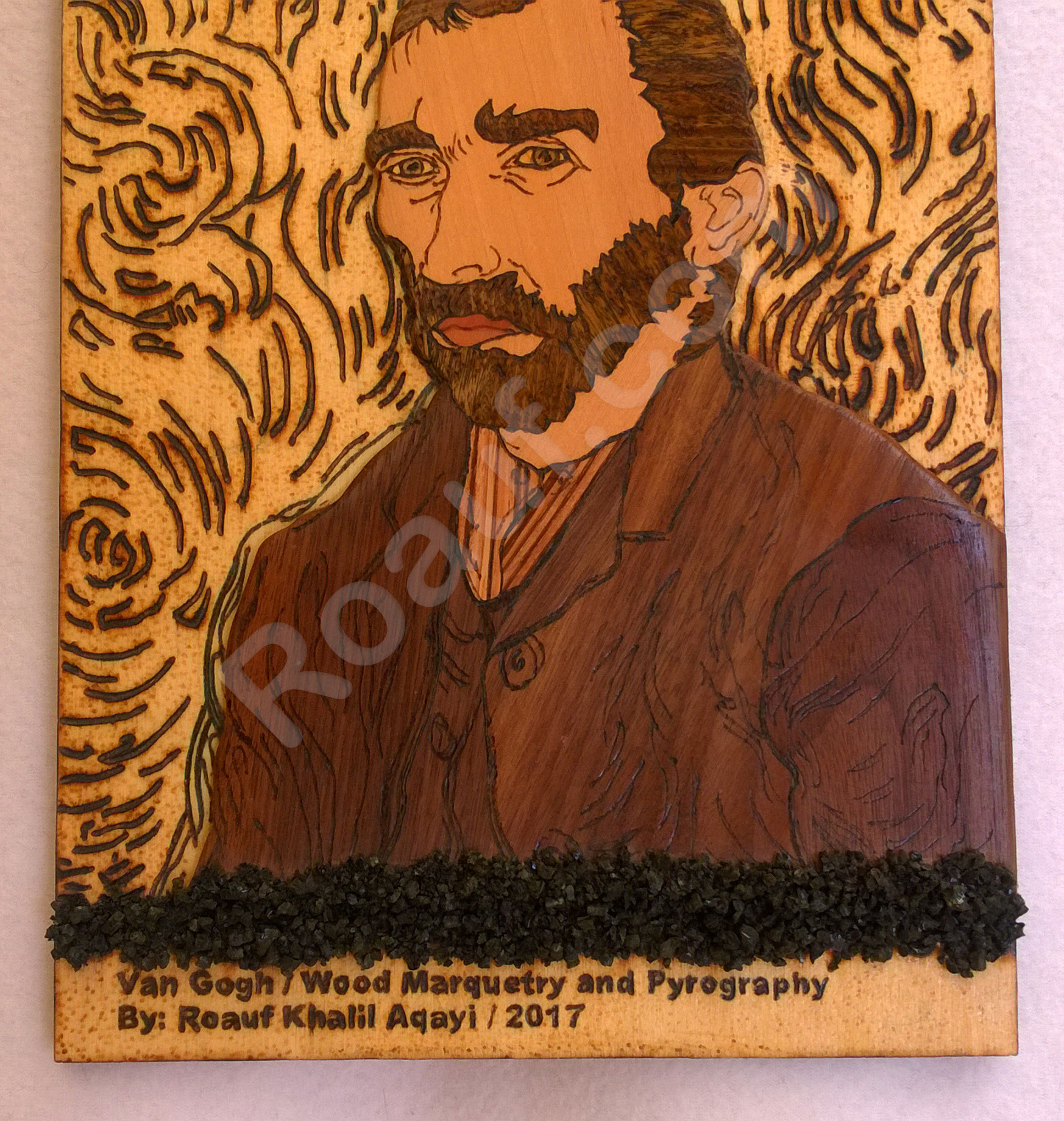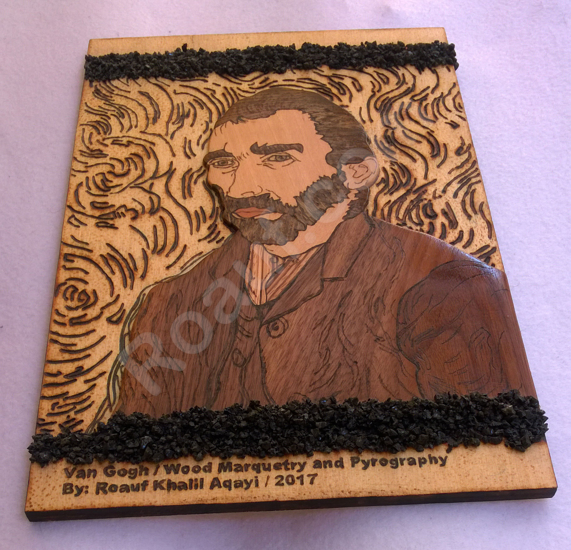 Wood Inlay / Wood Marquetry and Pyrography Panel of Van Gogh